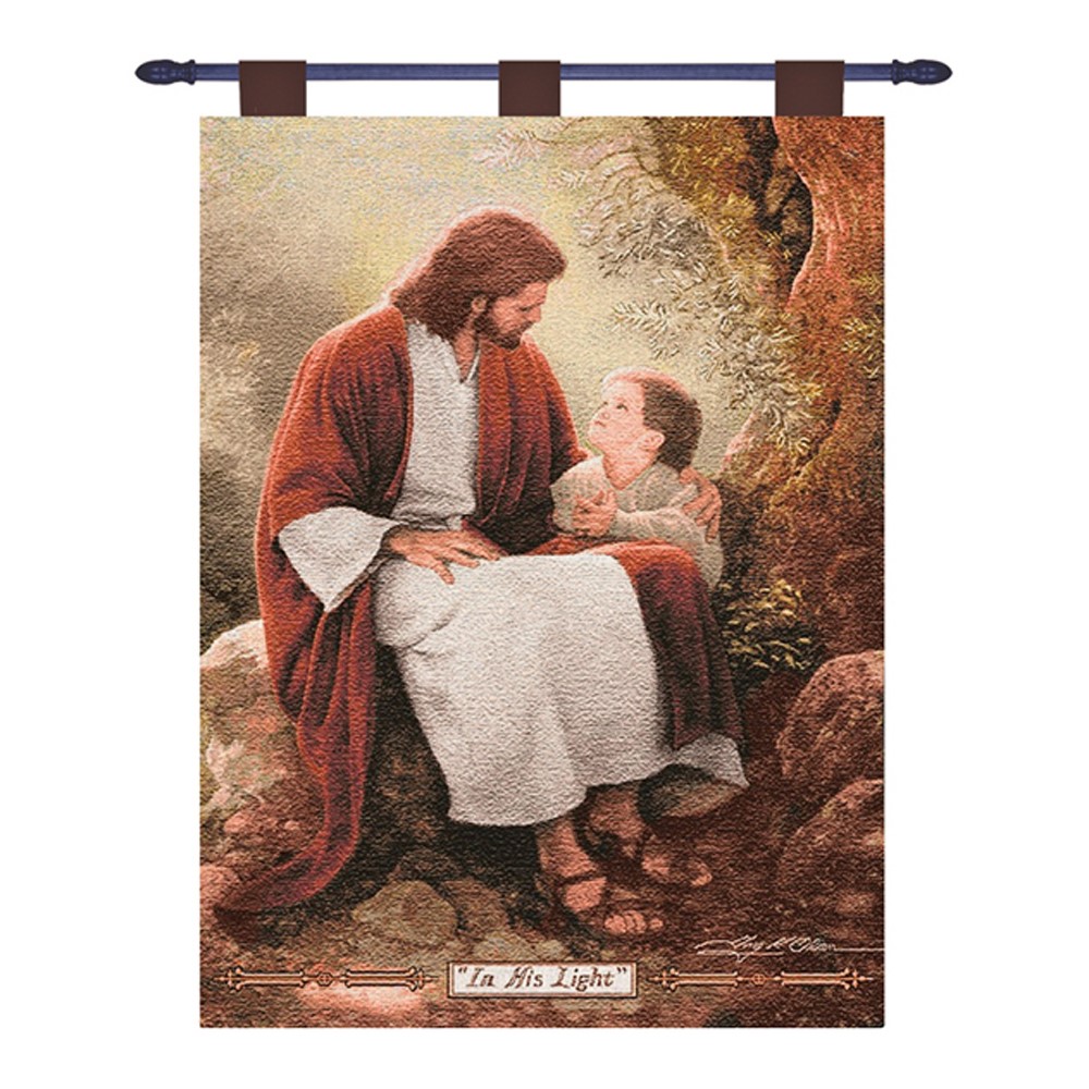 The In His Light Wall Hanging is a versatile piece of wall decor that will add inspiration and charm to your home! This heirloom-quality weaving is made of from 100% cotton, with color cordinating tabs and rod for easy installation. Our Tapestry Wall Hangings are a great way to add color and texture to a space, or give as a unique gift for someone special. © Greg Olsen