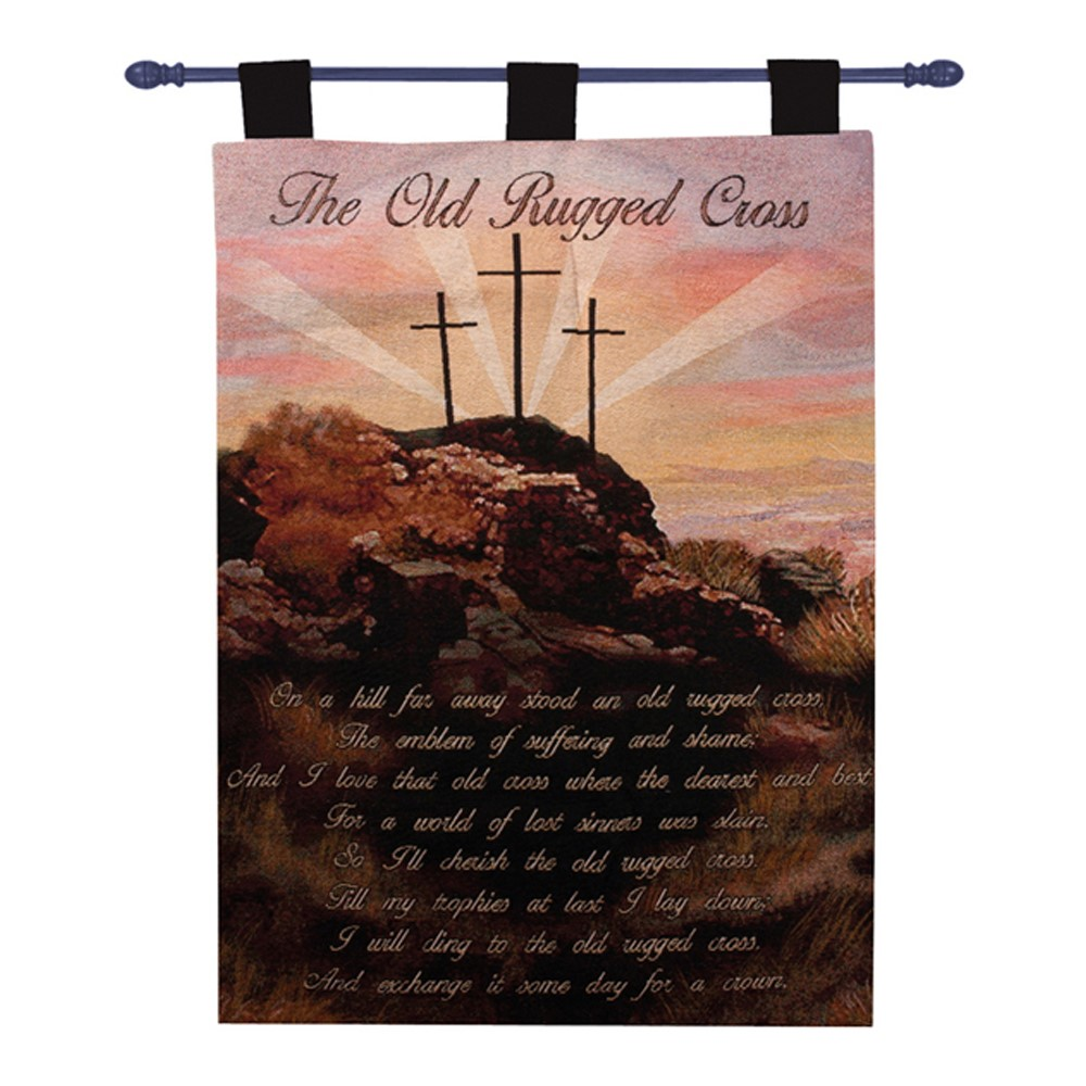 The Old Rugged Cross Tapestry Wall Hanging is a versatile piece of wall decor that will add inspiration and charm to your home! This heirloom-quality weaving is made of from 100% cotton, with color cordinating tabs and rod for easy installation. Our Tapestry Wall Hangings are a great way to add color and texture to a space, or give as a unique gift for someone special.