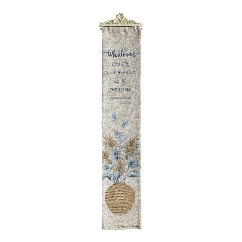 Add boutique charm to your home with our Whatever You Do Bell Pull! This 9" x 41" weaving features a tassel and hanging string. © Rebecca Canale, Rep. by DSW Licensing Co.
